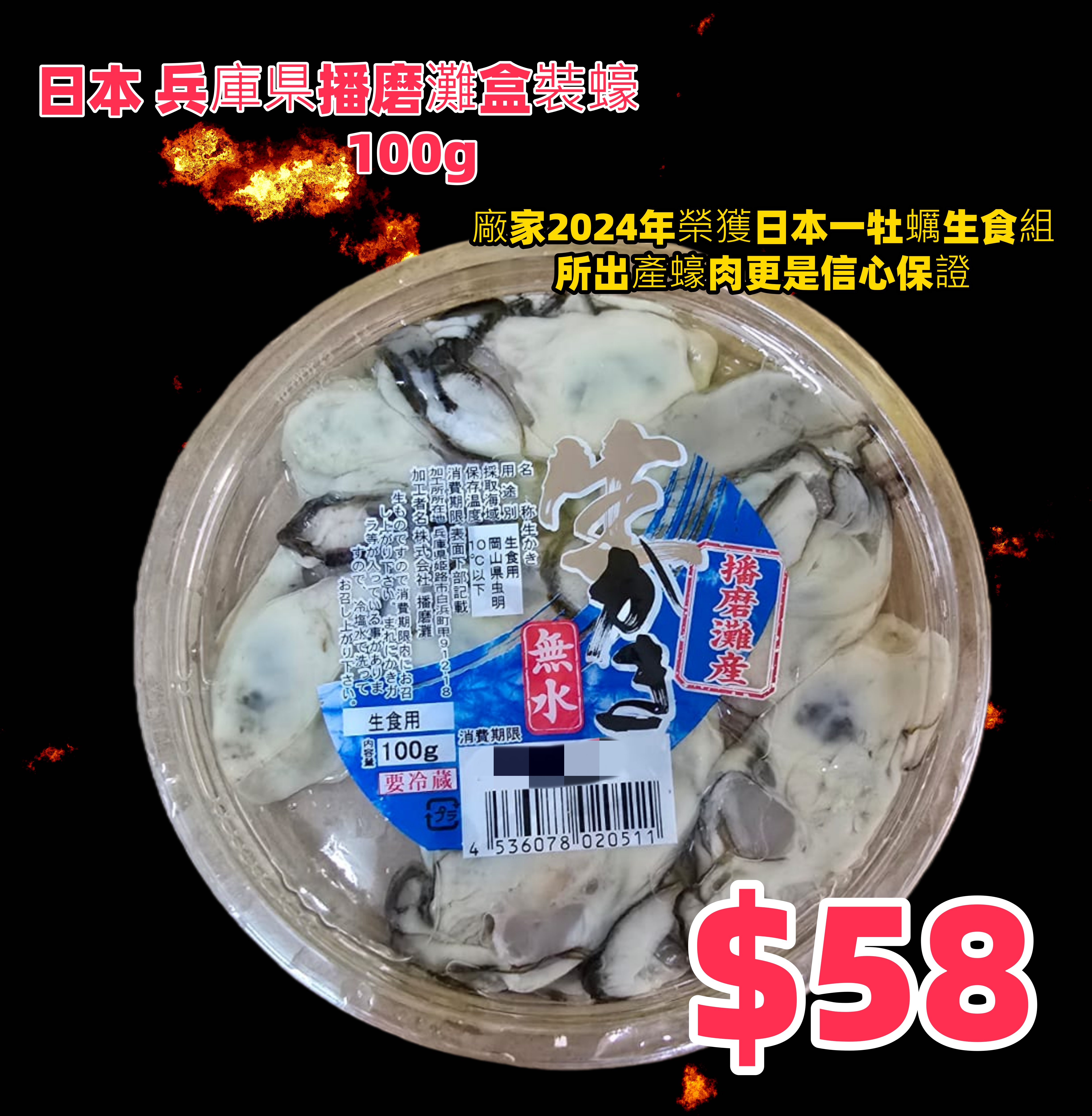 日本 兵庫県播磨灘盒裝蠔 100g 廠家2024年榮獲日本一牡蠣生食組 所出產蠔肉更是信心保證